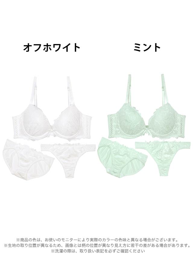 ダスティブルームエンブロイダリー育乳脇高ブラジャー&バック透けフルバックショーツ