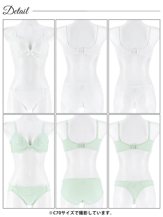 オールレースカットストリング育乳脇高ブラジャー&バック透けフルバックショーツ