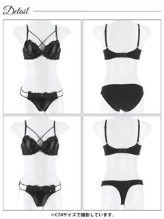 オールレースカットストリング育乳脇高ブラジャー&バック透けフルバックショーツ