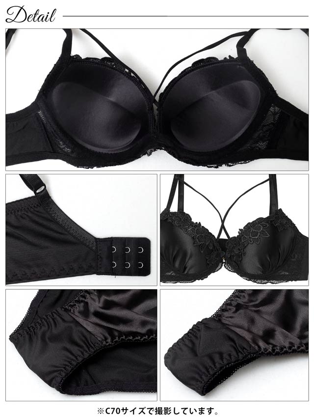 ノーブルサテンレース育乳脇高ブラジャー&バック透けフルバックショーツ[激売れ]