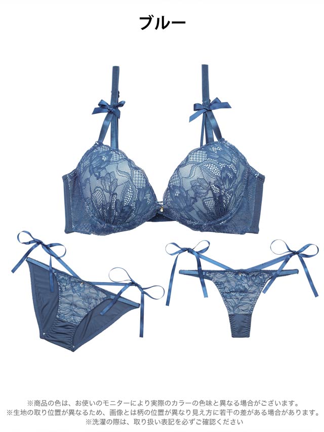 12/2再販!【三上悠亜着用】【3点セット】エトワールリボンレース育乳脇高ブラジャー&フルバック&Tバックショーツ[大人気]