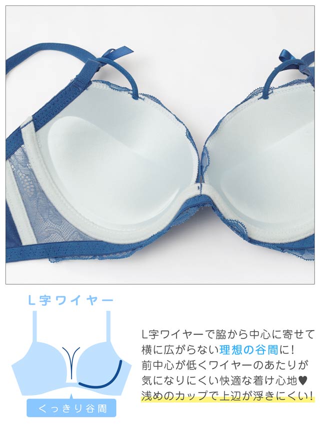 ダスティブルームエンブロイダリー育乳脇高ブラジャー&バック透けフルバックショーツ