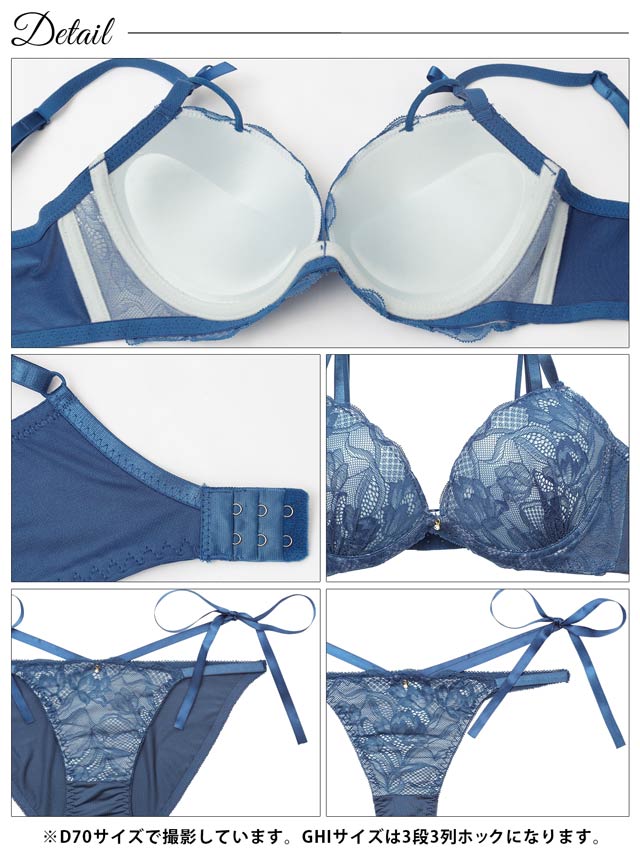 12/2再販!【三上悠亜着用】【3点セット】【GHIサイズ】エトワールリボンレース育乳脇高ブラジャー&フルバック&Tバックショーツ[大人気]