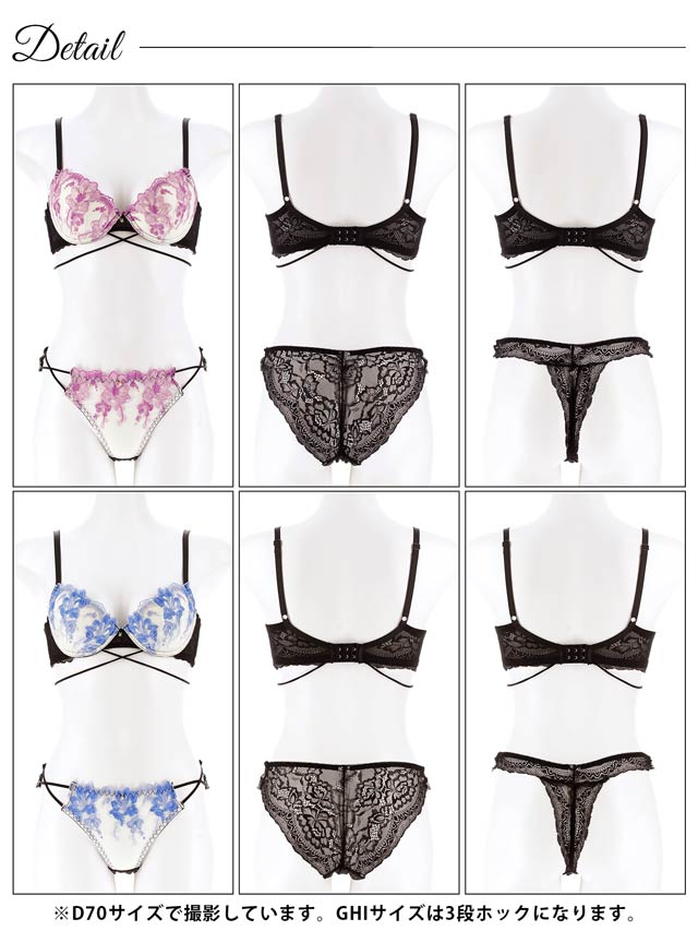 ダスティブルームエンブロイダリー育乳脇高ブラジャー&バック透けフルバックショーツ
