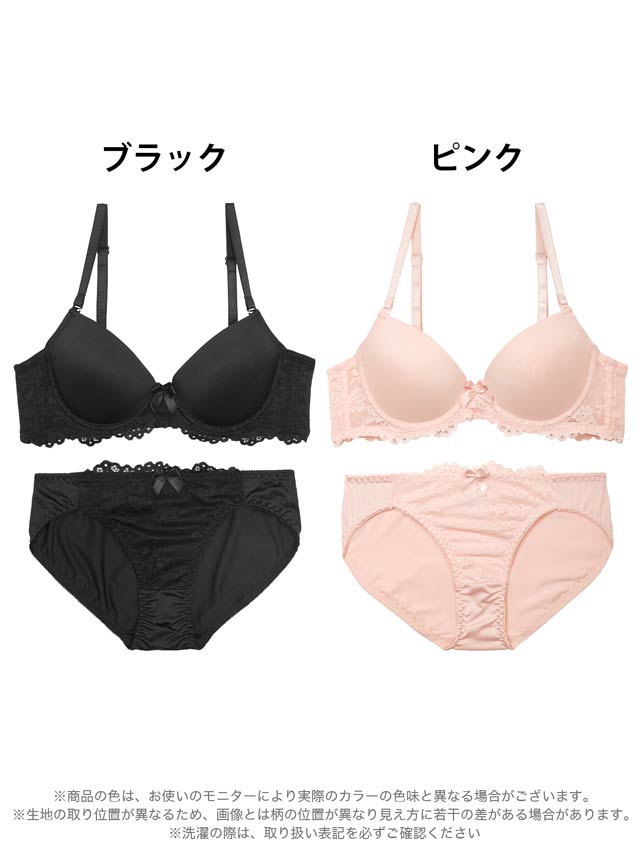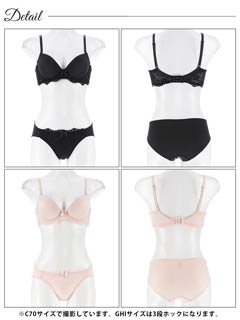 【GHIサイズ】シンプルレーシィスムース育乳脇高ブラジャー&フルバックショーツ[大人気]