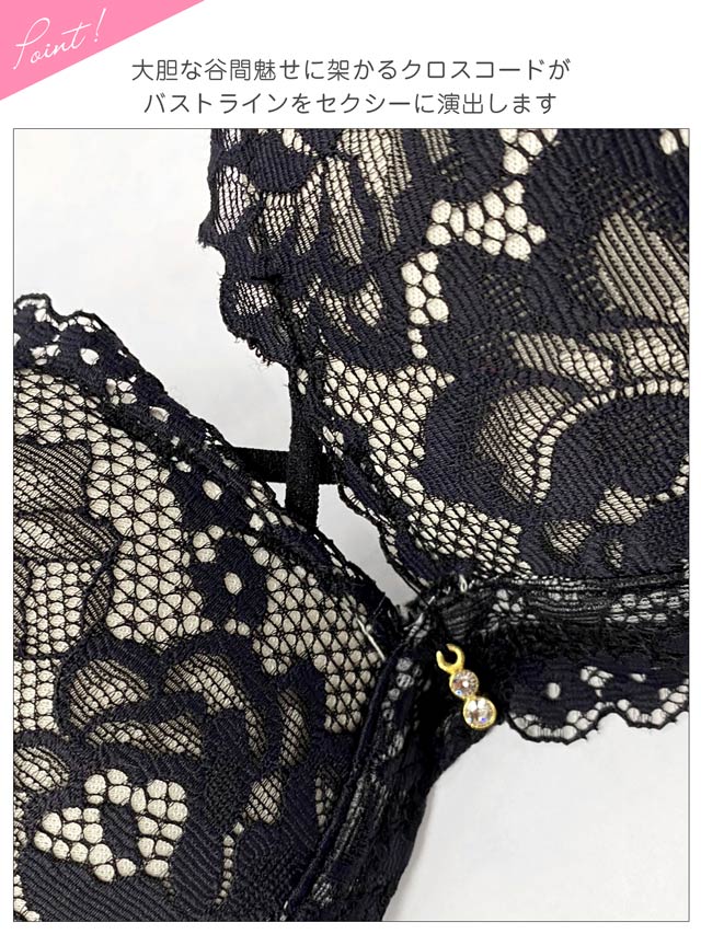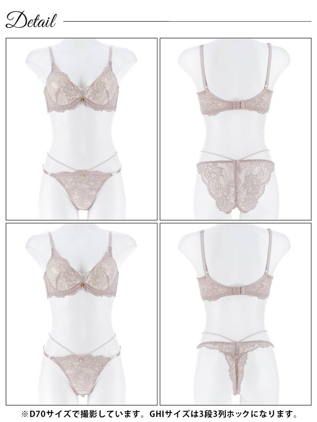 オールレースカットストリング育乳脇高ブラジャー&バック透けフルバックショーツ