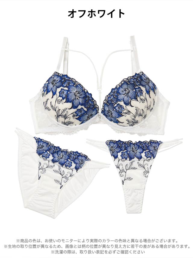 ダスティブルームエンブロイダリー育乳脇高ブラジャー&バック透けフルバックショーツ