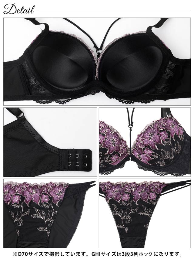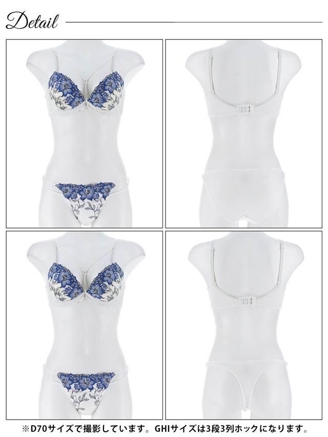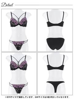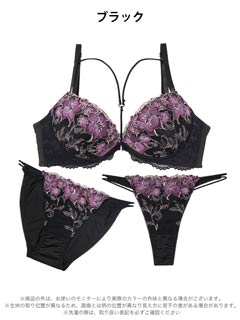 12/1新作!【3点セット】【GHIサイズ】ラグジュアリーフローラルブラジャー&フルバック&Tバックショーツ[大人気]