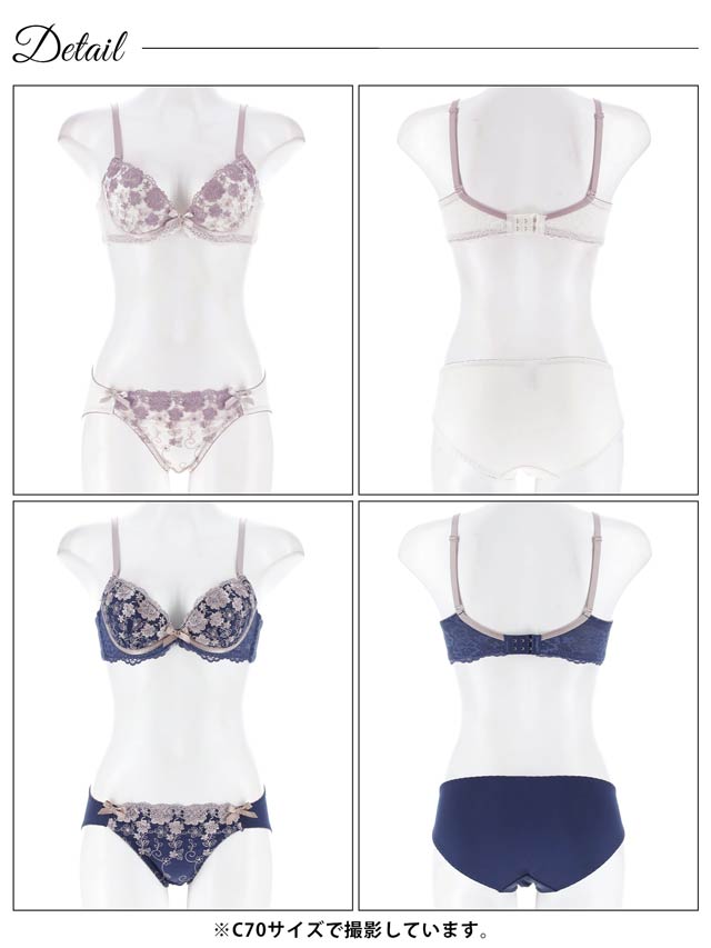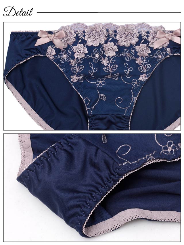 ダスティブルームエンブロイダリー育乳脇高ブラジャー&バック透けフルバックショーツ