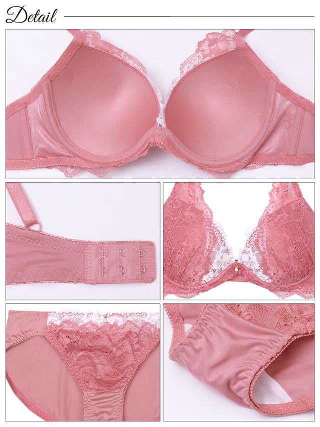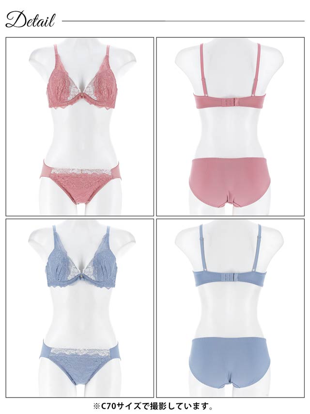 オールレースカットストリング育乳脇高ブラジャー&バック透けフルバックショーツ