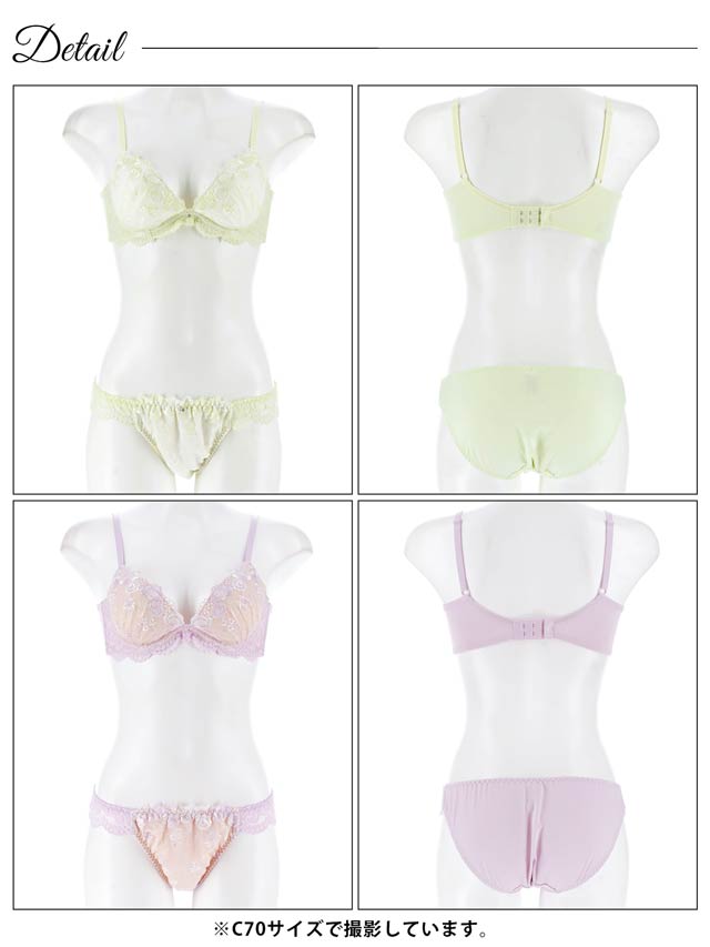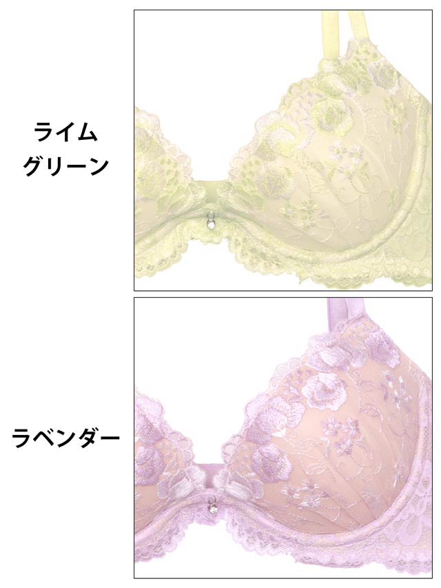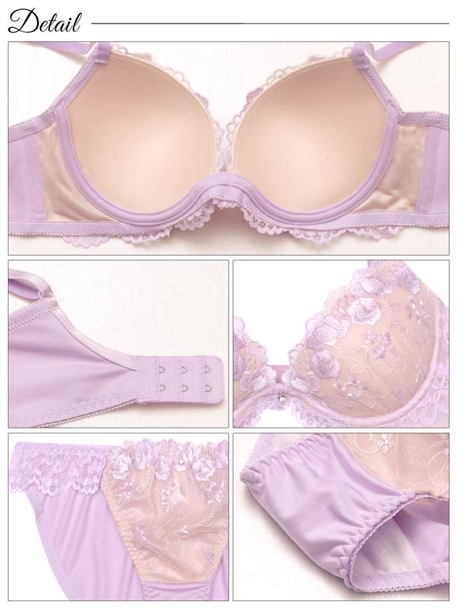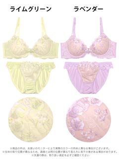 ダスティブルームエンブロイダリー育乳脇高ブラジャー&バック透けフルバックショーツ