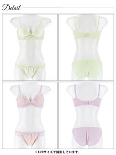 【ノンワイヤー】パステルグラデーションレース育乳脇高ブラジャー&フルバックショーツ[プチプラ]