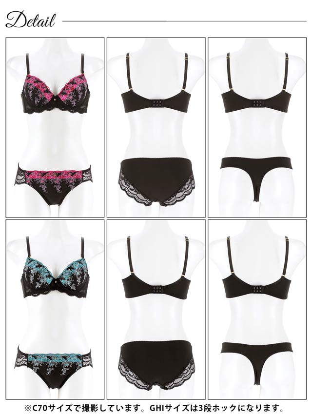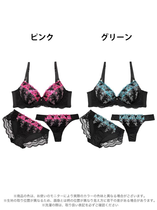 【3点セット】【GHIサイズ】ビビットスカラップローズ育乳脇高ブラジャー&フルバック&Tバックショーツ[大人気]