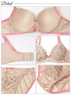 ダスティブルームエンブロイダリー育乳脇高ブラジャー&バック透けフルバックショーツ