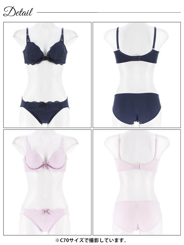 ダスティブルームエンブロイダリー育乳脇高ブラジャー&バック透けフルバックショーツ