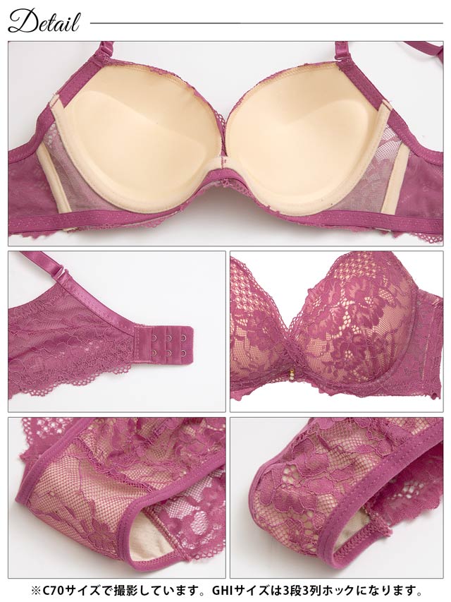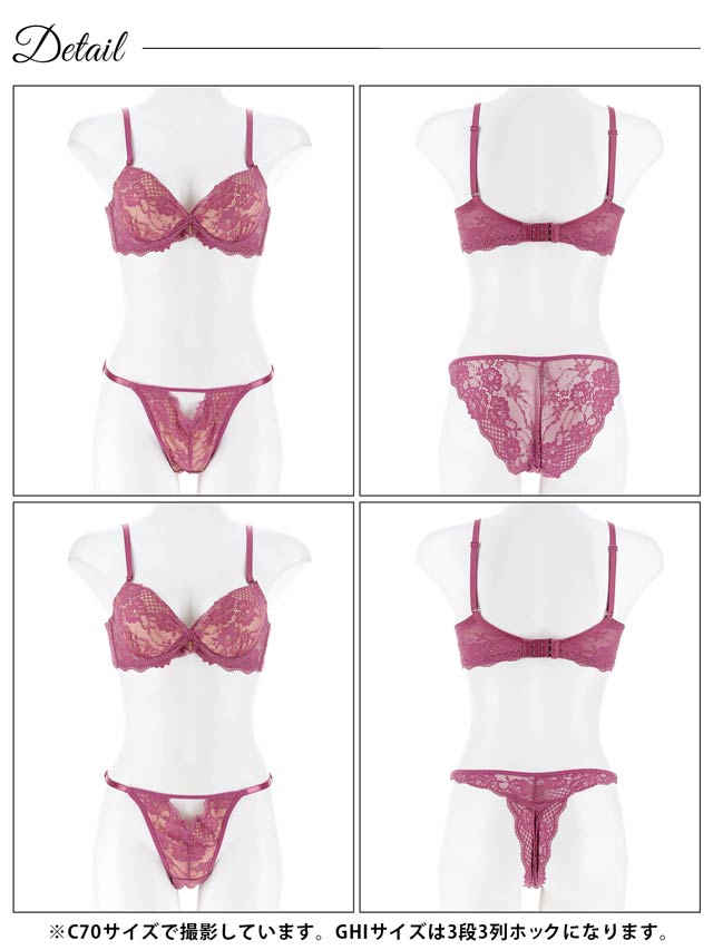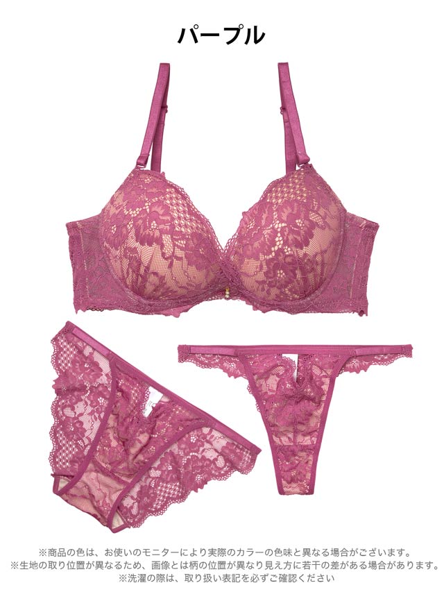 11/5新作!【3点セット】【GHIサイズ】カシュクールヌーディーレース育乳脇高ブラジャー&バック透けフルバック&Tバックショーツ[大人気]