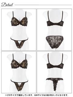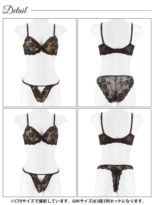 オールレースカットストリング育乳脇高ブラジャー&バック透けフルバックショーツ