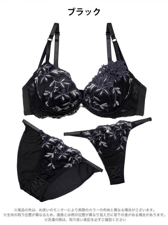 3/18新作!【3点セット】ルミナスボタニカルフラワーブラジャー&フルバック&Tバックショーツ[大人気]