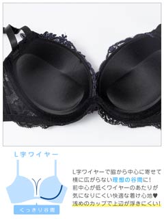 ブロッサムギャザーレース育乳脇高ブラジャー&バック透けフルバックショーツ