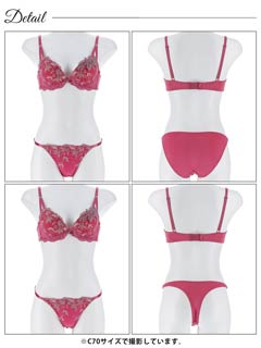 【3点セット】W盛り★グロッシーローズ育乳脇高ブラジャー&フルバックショーツ&Tバックショーツ[大人気]