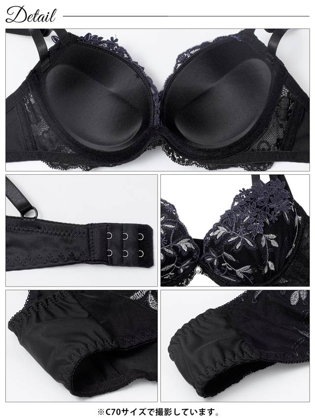 ダスティブルームエンブロイダリー育乳脇高ブラジャー&バック透けフルバックショーツ