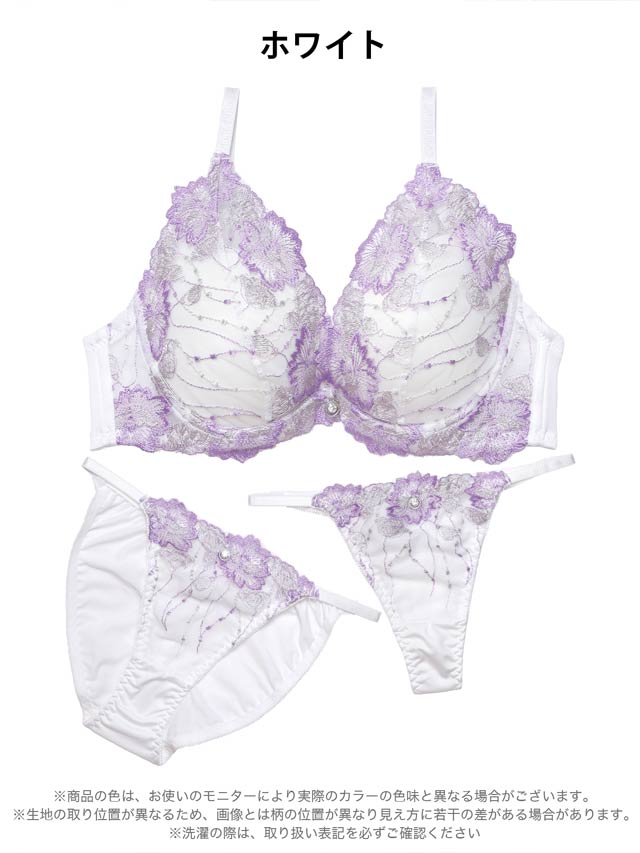 12/2再販!【三上悠亜着用】【3点セット】エトワールリボンレース育乳脇高ブラジャー&フルバック&Tバックショーツ[大人気]