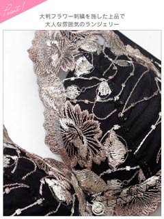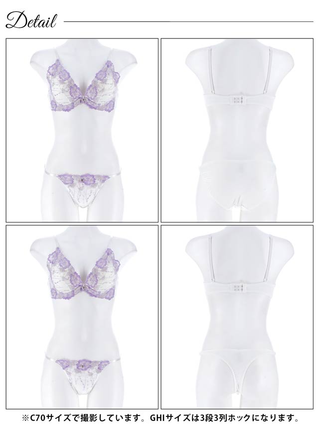 ダスティブルームエンブロイダリー育乳脇高ブラジャー&バック透けフルバックショーツ