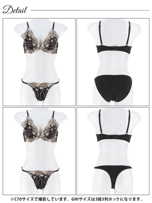 12/1新作!【3点セット】【GHIサイズ】ラグジュアリーフローラルブラジャー&フルバック&Tバックショーツ[大人気]