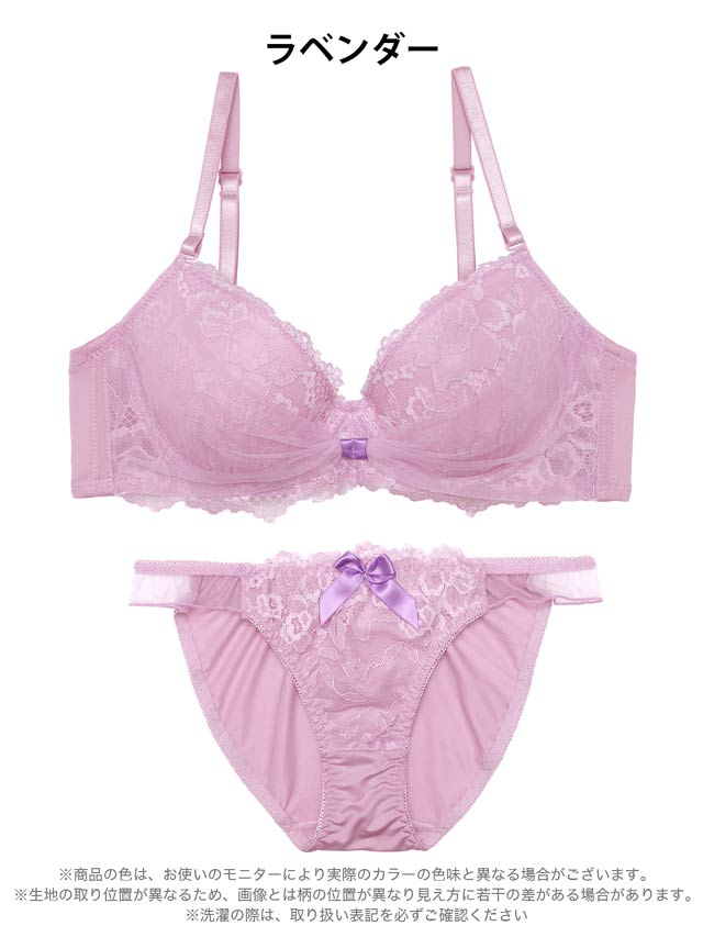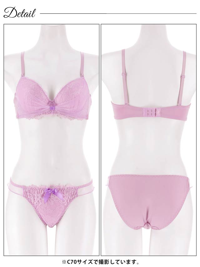 ダブルリボンメロウハート育乳脇高ブラジャー&バック透けフルバックショーツ[激売れ]