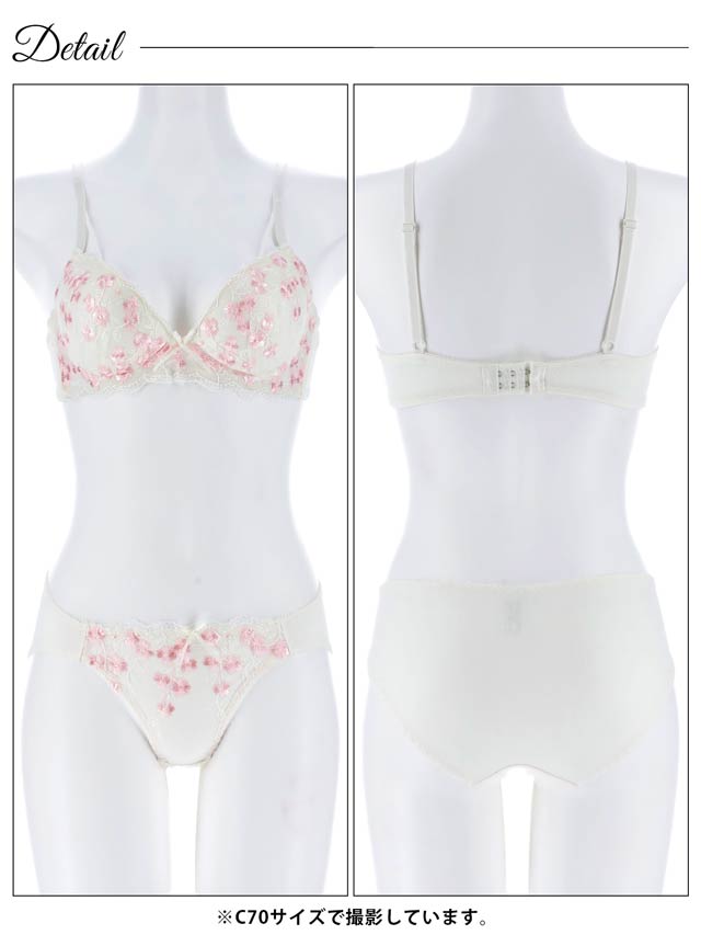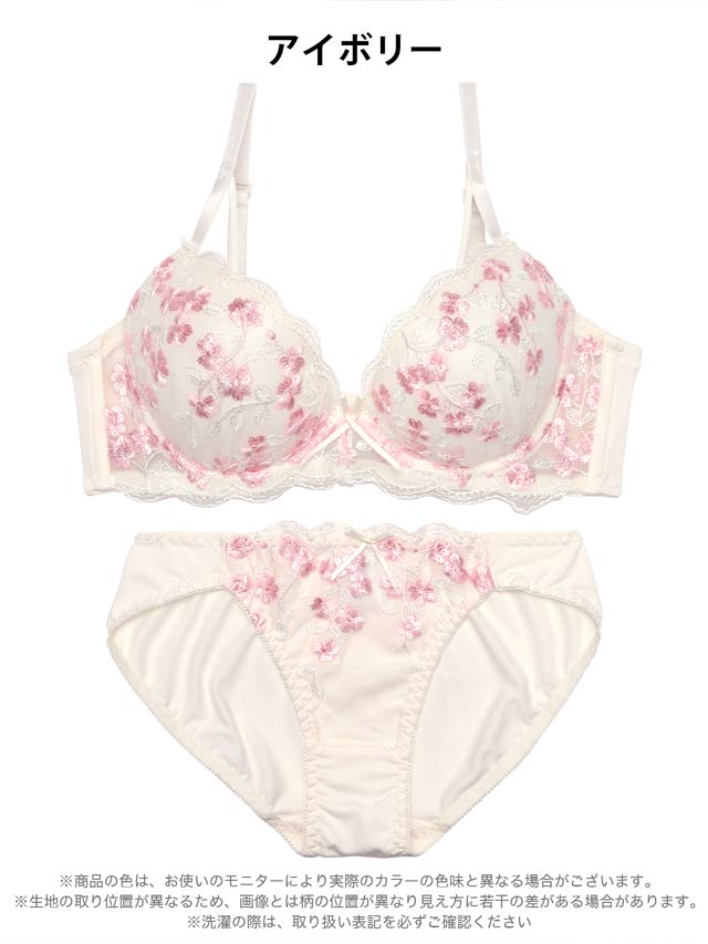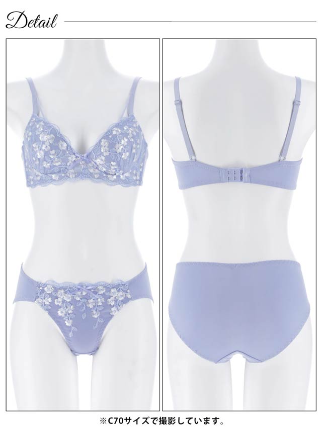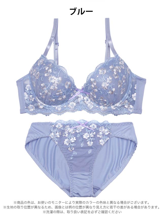 2/14再販!ダスティブルームエンブロイダリー育乳脇高ブラジャー&バック透けフルバックショーツ[激売れ]