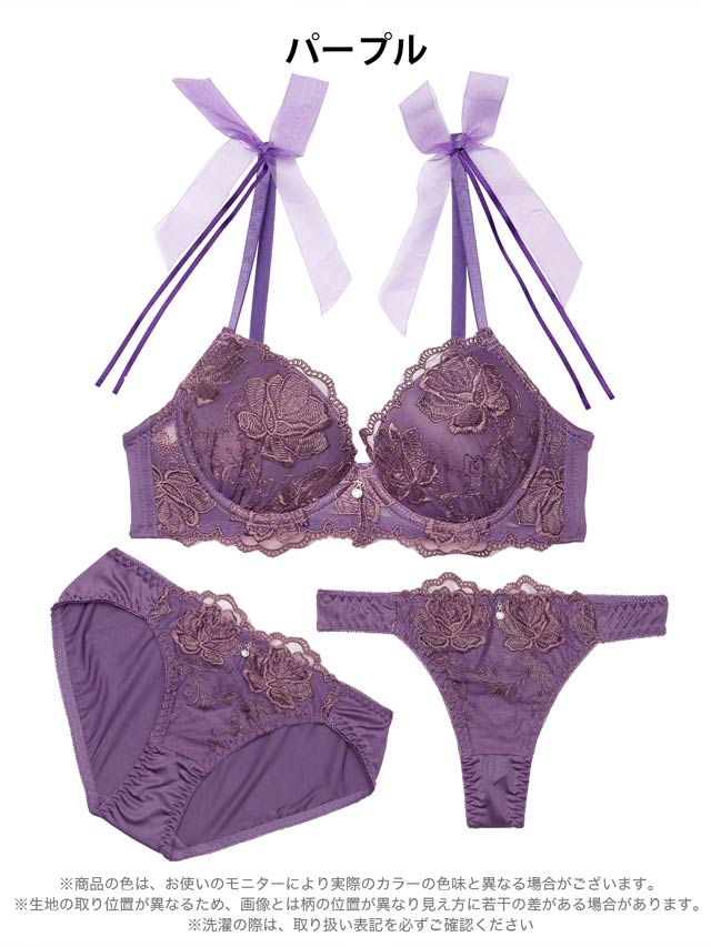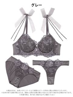 3/11新作!【3点セット】チュールリボンエンブロイダリーブラジャー&フルバックショーツ&Tバックショーツ[大人気]