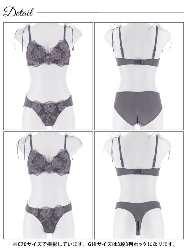 3/11新作!【3点セット】【GHIサイズ】チュールリボンエンブロイダリーブラジャー&フルバックショーツ&Tバックショーツ[大人気]
