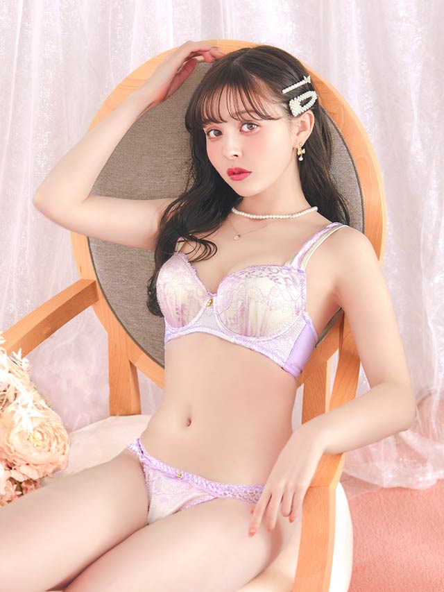 ダスティブルームエンブロイダリー育乳脇高ブラジャー&バック透けフルバックショーツ