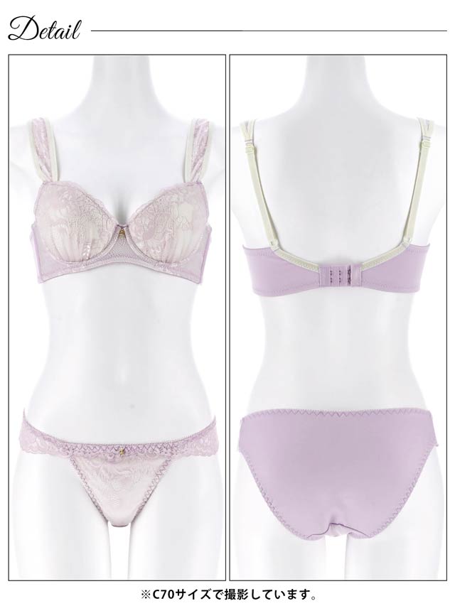 3/12再販!ダスティブルームエンブロイダリー育乳脇高ブラジャー&バック透けフルバックショーツ[激売れ]