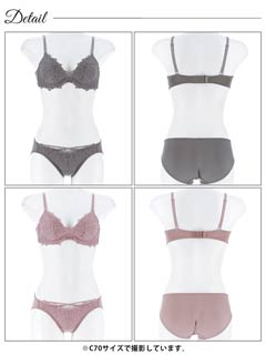 オールレースカットストリング育乳脇高ブラジャー&バック透けフルバックショーツ