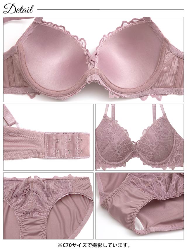 フロレゾンローズレース育乳脇高ブラジャー&サイド紐バック透けフルバックショーツ
