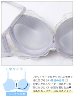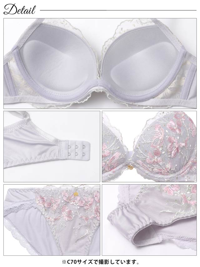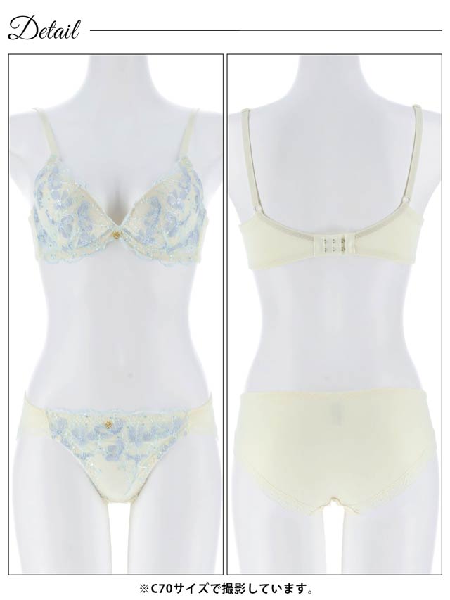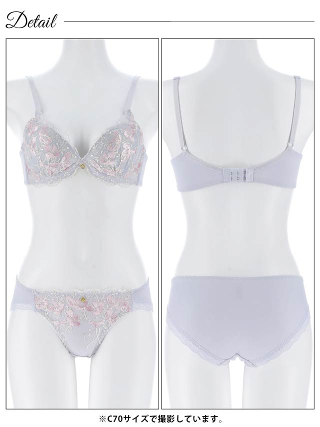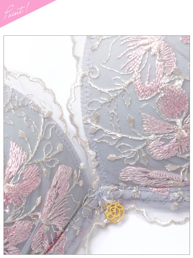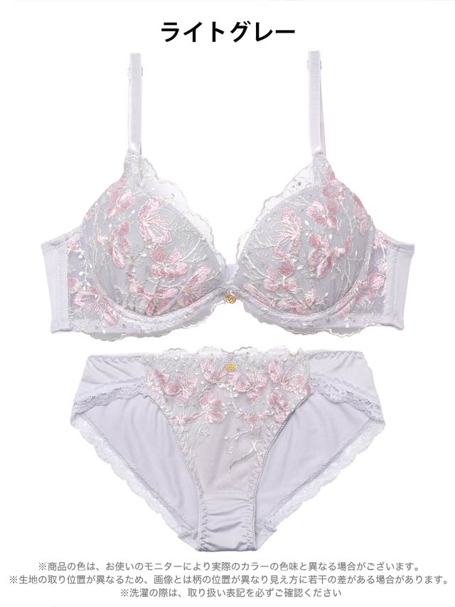 ブロッサムギャザーレース育乳脇高ブラジャー&バック透けフルバックショーツ