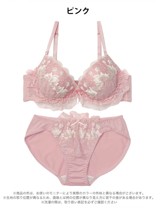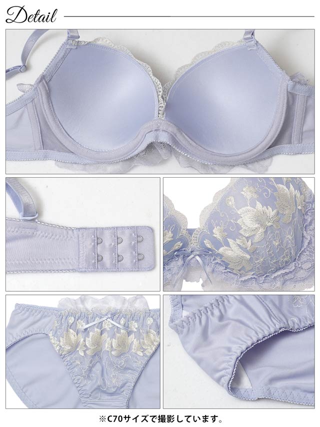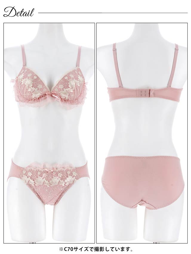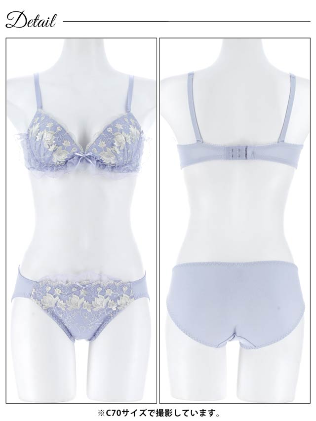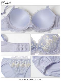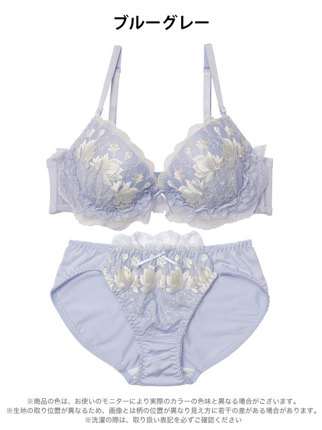 ダスティブルームエンブロイダリー育乳脇高ブラジャー&バック透けフルバックショーツ