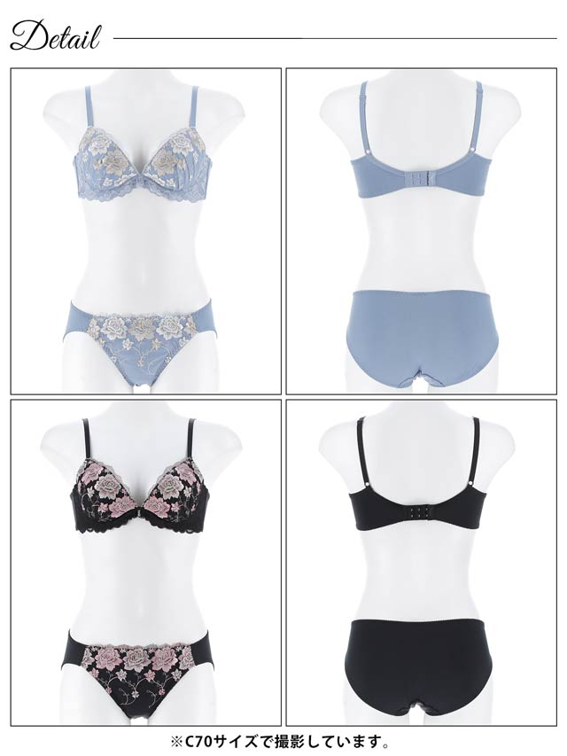 ダスティブルームエンブロイダリー育乳脇高ブラジャー&バック透けフルバックショーツ