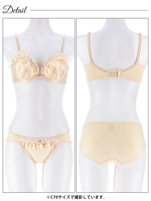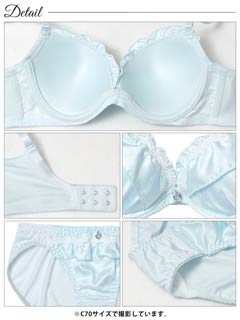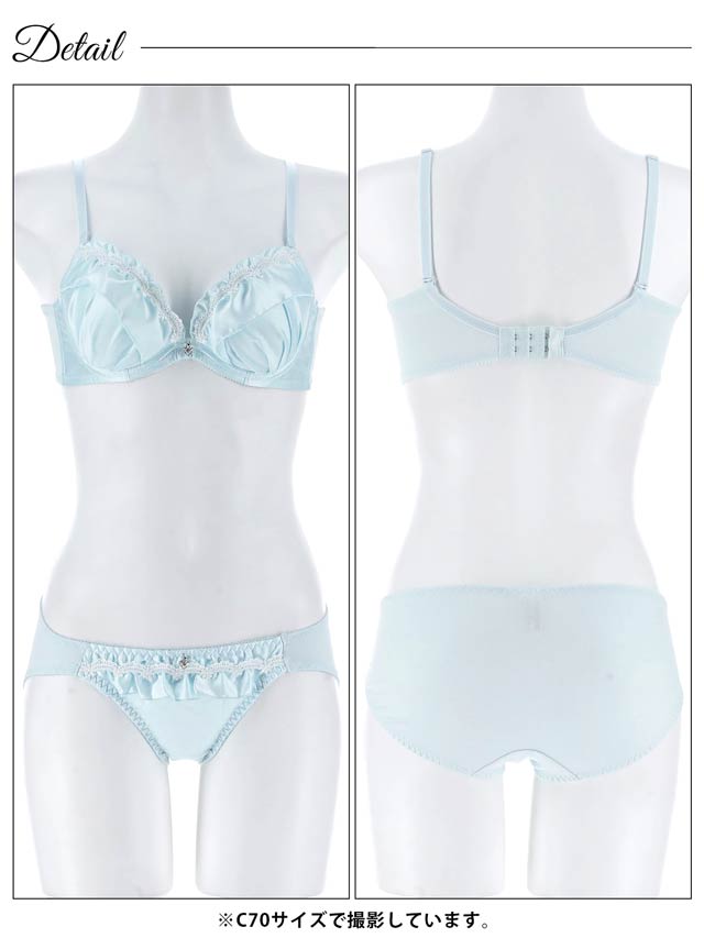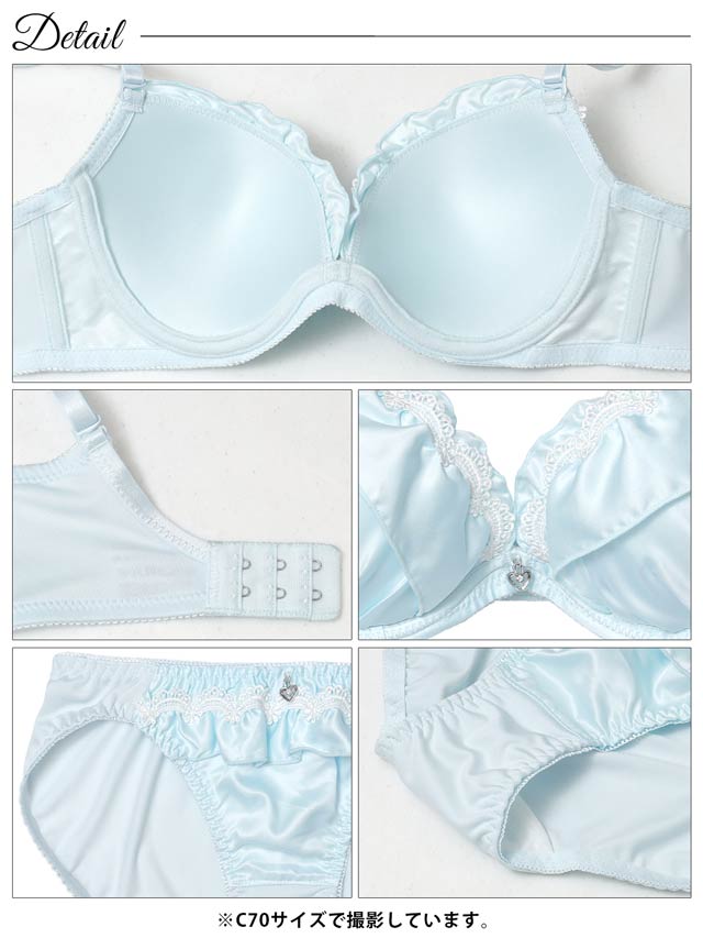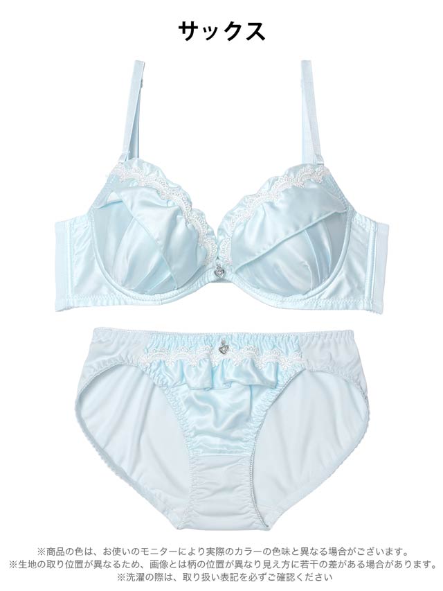 11/5新作!【EFサイズ】サテンフリルアーチ育乳脇高ブラジャー&フルバックショーツ[大人気]