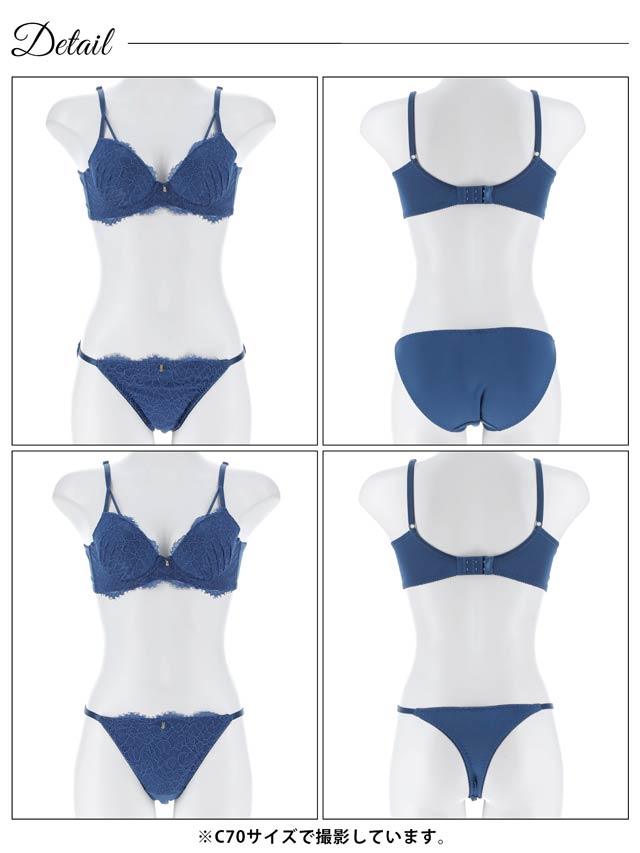 オールレースカットストリング育乳脇高ブラジャー&バック透けフルバックショーツ
