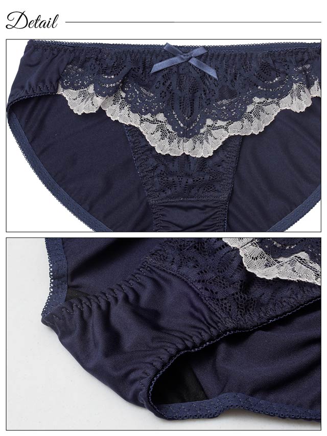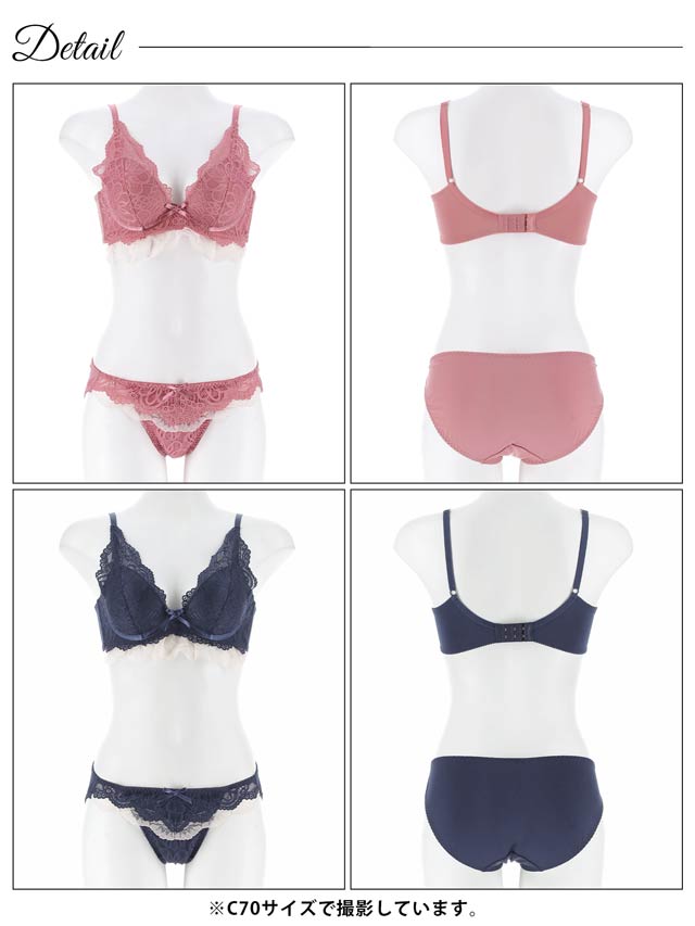 オールレースカットストリング育乳脇高ブラジャー&バック透けフルバックショーツ
