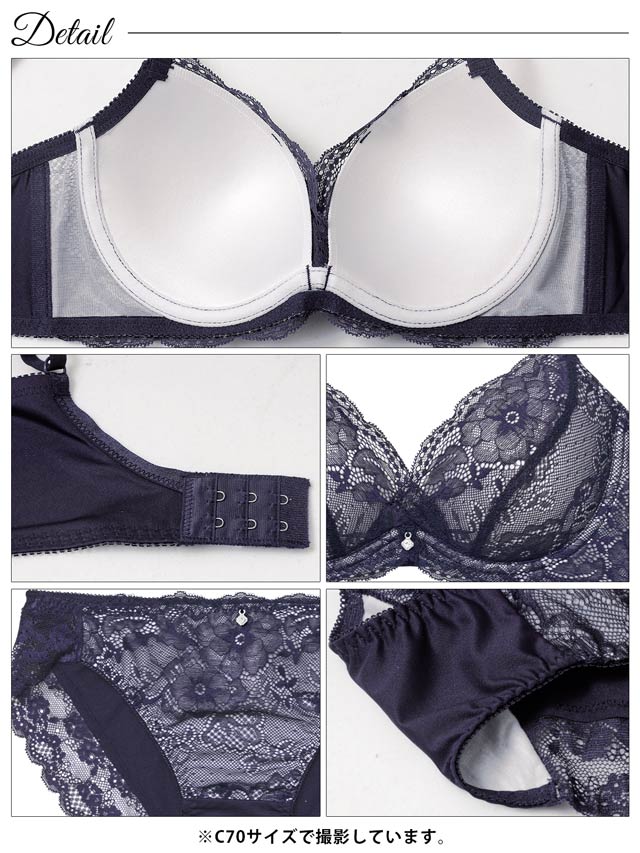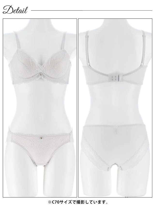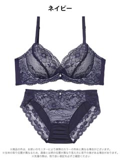フローラルミューズ育乳脇高ブラジャー&バック透けフルバックショーツ