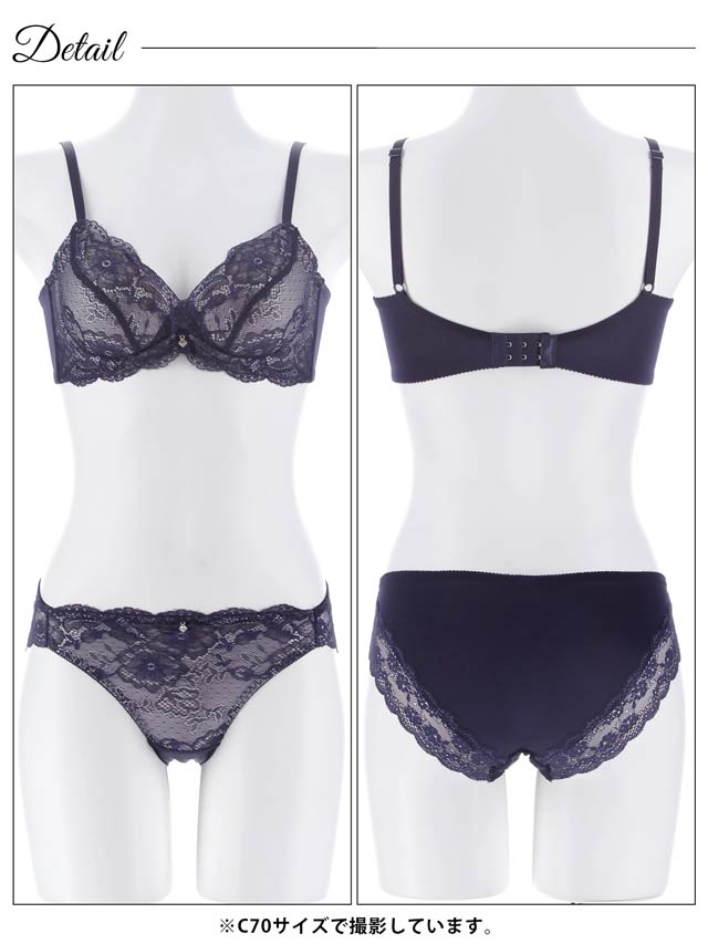 オールレースカットストリング育乳脇高ブラジャー&バック透けフルバックショーツ
