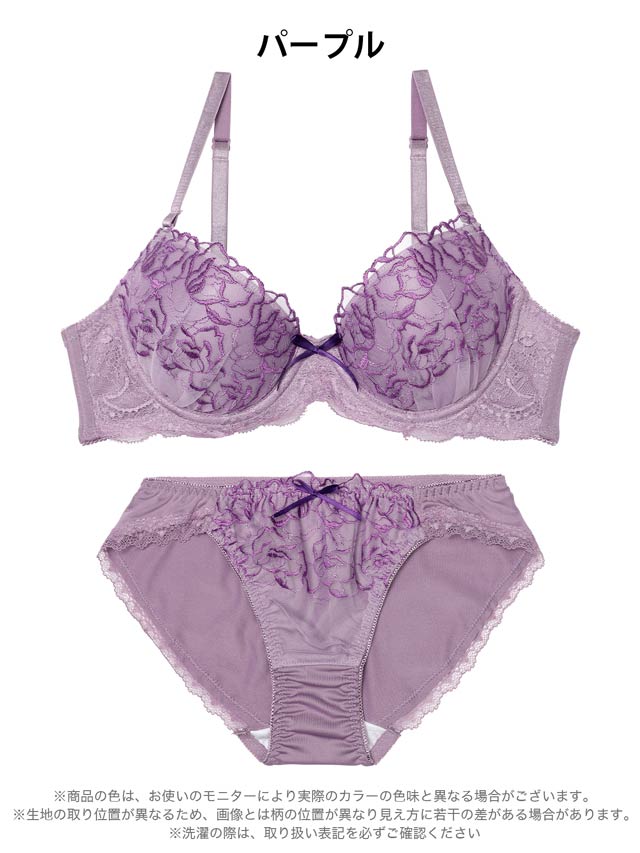 フローラルミューズ育乳脇高ブラジャー&バック透けフルバックショーツ