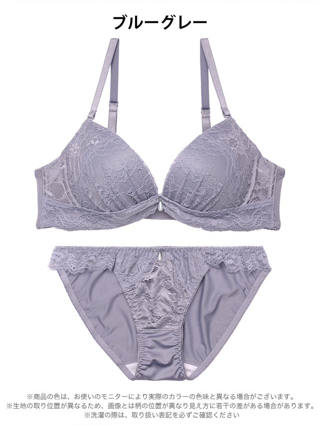4/8再販!大判フラワー総レース育乳脇高ブラジャー&バック透けフルバックショーツ[激売れ]