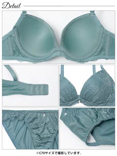 大判フラワー総レース育乳脇高ブラジャー&バック透けフルバックショーツ
