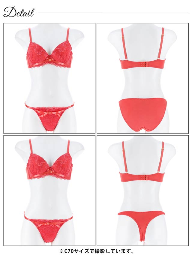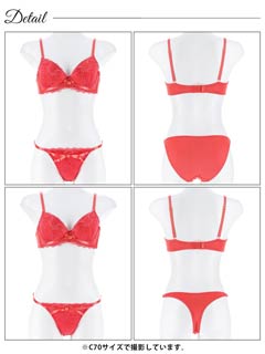 オールレースカットストリング育乳脇高ブラジャー&バック透けフルバックショーツ