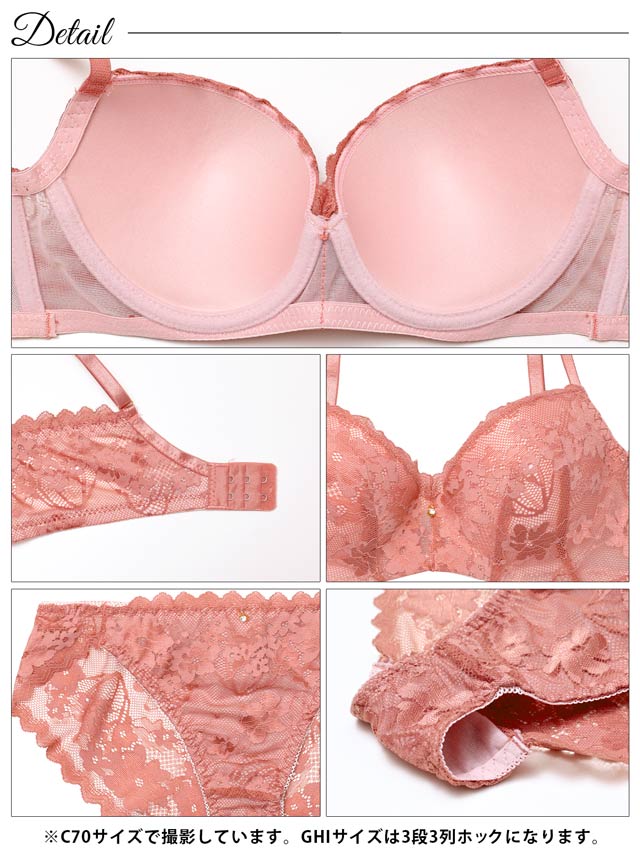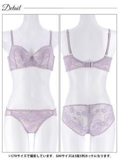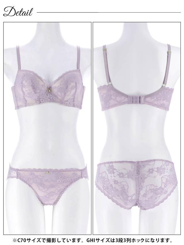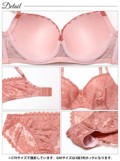 4/15新作!【GHIサイズ】ニュアンスフラワーレース育乳脇高ブラジャー&バック透けフルバックショーツ[大人気]