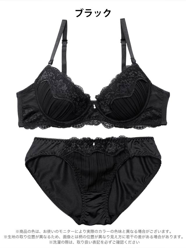 ブロッサムギャザーレース育乳脇高ブラジャー&バック透けフルバックショーツ